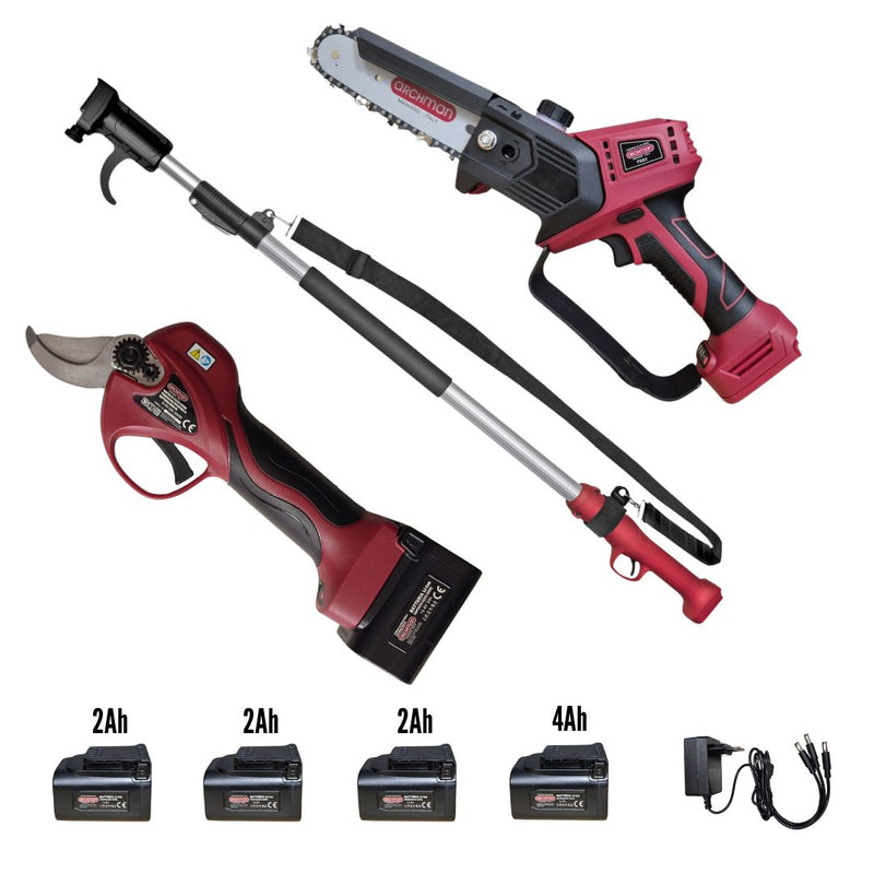 Visualizza tutti i dettagliKit Potatura a batteria - Forbice Potatura FE08-32 + Potatore PE03 da cm. 15 + Asta Telescopica Archman AT1521X e Completo di 2 batterie al litio ...