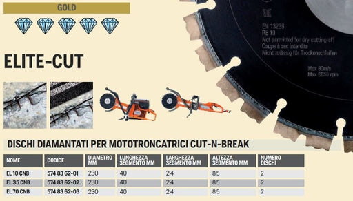 Disco Diamantato Hva 230 EL10CNB Pack 2 per troncatrice C&B Husqvarna