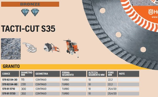 Visualizza tutti i dettagliDisco Diamantato Hva 115 Tacti-Cut S35 Granito Husqvarna