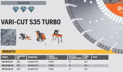HusqvarnaDisco Diamantato Hva 350 Vari-Cut S35 Granito Husqvarna La gamma Vari-Cut di lamediamantate e' la nostra categoria intermedia o Silver Questa cate...