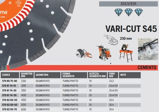 Visualizza tutti i dettagliDisco Diamantato Hva 400 Vari-Cut S45 Cemento Husqvarna