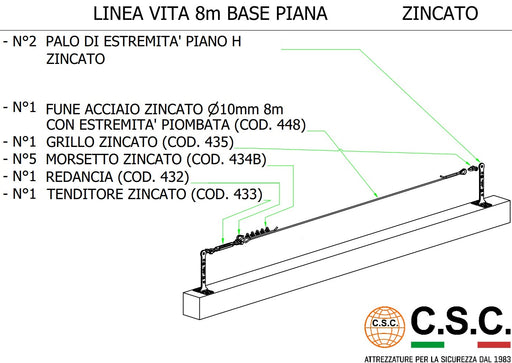 Visualizza tutti i dettagliKit Linea Vita Light Zincata Base Piana da mt.8 CSC