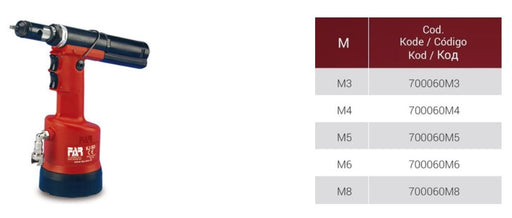 Rivettatrice oleopneumatica per inserti filettati Far Mod. KJ60 Rivettatrice oleopneumatica per inserti filettati in scatola di cartone con un sin...