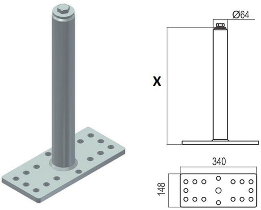 Paletto Linea Vita Combo base inclinata CSC 504-70 H cm.76