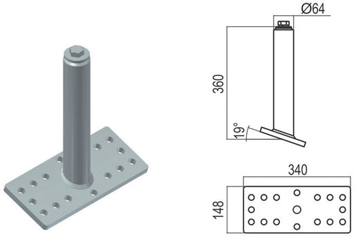 Paletto Linea Vita Combo base inclinata CSC 504-35 H cm.35