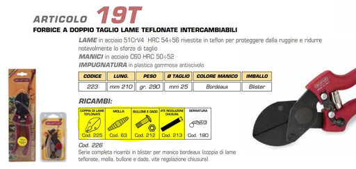 ArchmanForbice Doppio Taglio Archman Art 19T LAMA in acciaio 51CrV4 temperata HRC 54-56 rivestita in teflon per proteggere dalla ruggine e ridurre notevo...