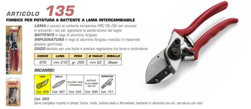 ArchmanForbice Vigna Archman Lama Teflonata Battente Art.9 - Rif. 176 LAMA in acciaio al carbonio legato temperato HRC 54-56 garantisce resistenza e otti...