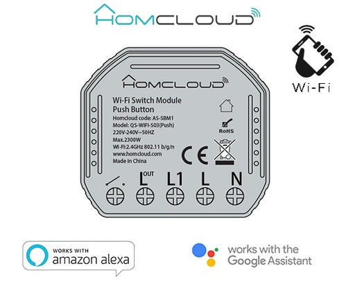 Modulo Pulsante Intelligente Wi-Fi da incasso Homcloud Modulo Pulsante Wi-Fi intelligente da inserire nella scatola elettrica 503, comandabile da ...