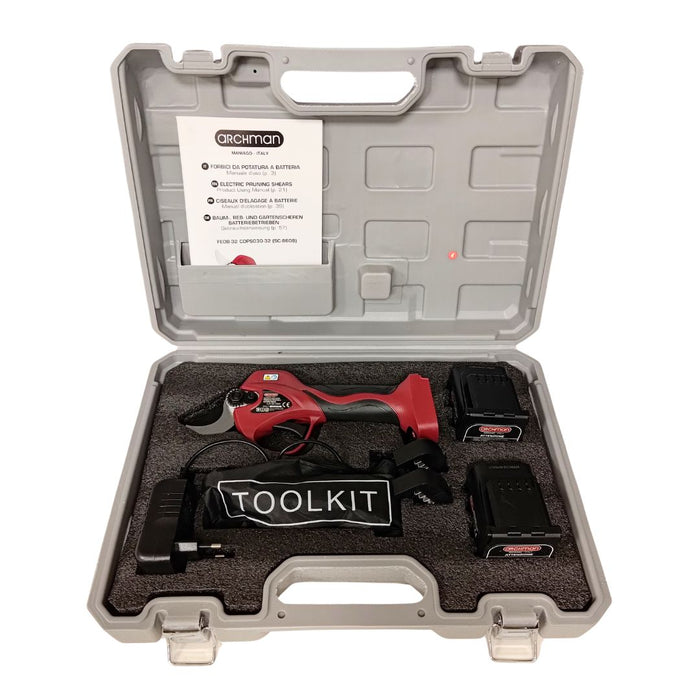 Forbice Potatura Elettronica Archman FE08-32 taglio mm.32 con 2 batterie al litio da 2.0Ah