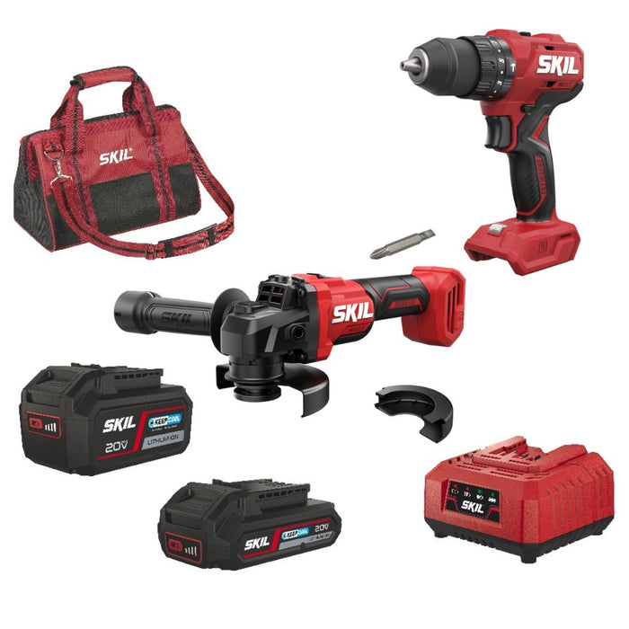 Kit Skil con Trapano a Percussione Batteria 3021CA + Smerigliatrice Batteria 3922CA + Caricabatteria 3122 + Batteria 2.0Ah + Batteria 4.0Ah - OMAGGIO SACCA per trasporto
