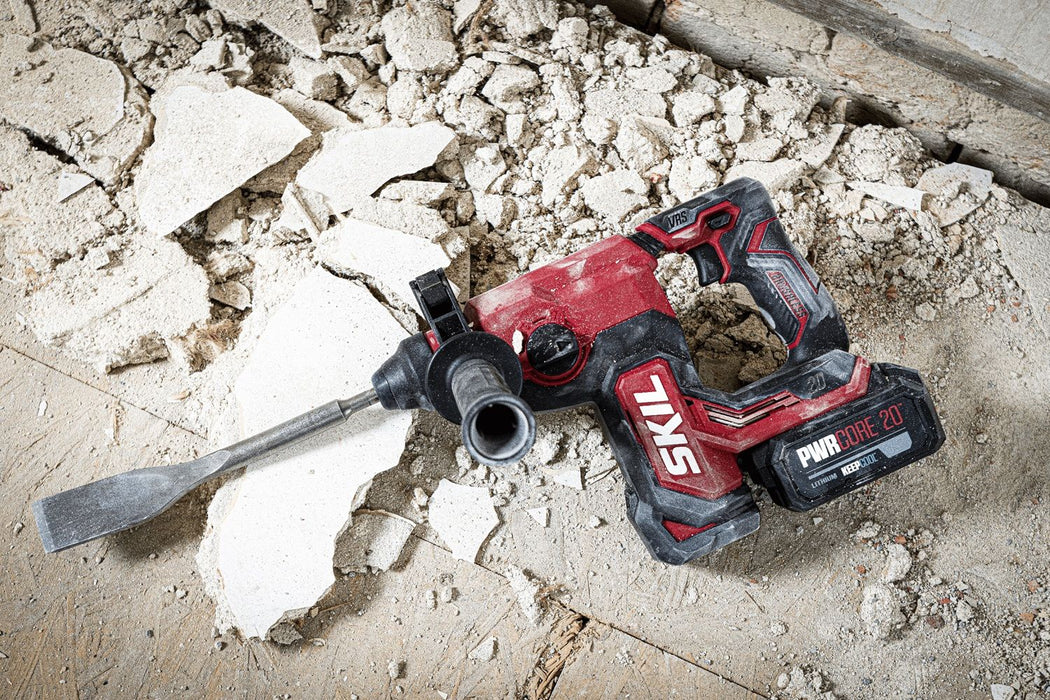 Il ‘20V Max’ 3851 è un tassellatore a batteria a quattro funzioni con meccanismo di percussione pneumatico e fa parte della gamma SKIL ‘brushless XP’.