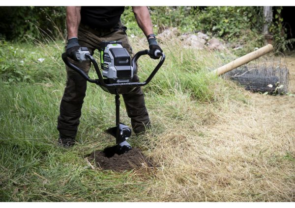 La mototrivella EGO Power+ PHA7400E, con i suoi 74 Nm di coppia, semplifica la perforazione ad alta velocità di terreno e ghiaccio, con comodi controlli utente tra cui due velocità, grilletto a velocità variabile, funzione di inversione e design ergonomico della maniglia.
