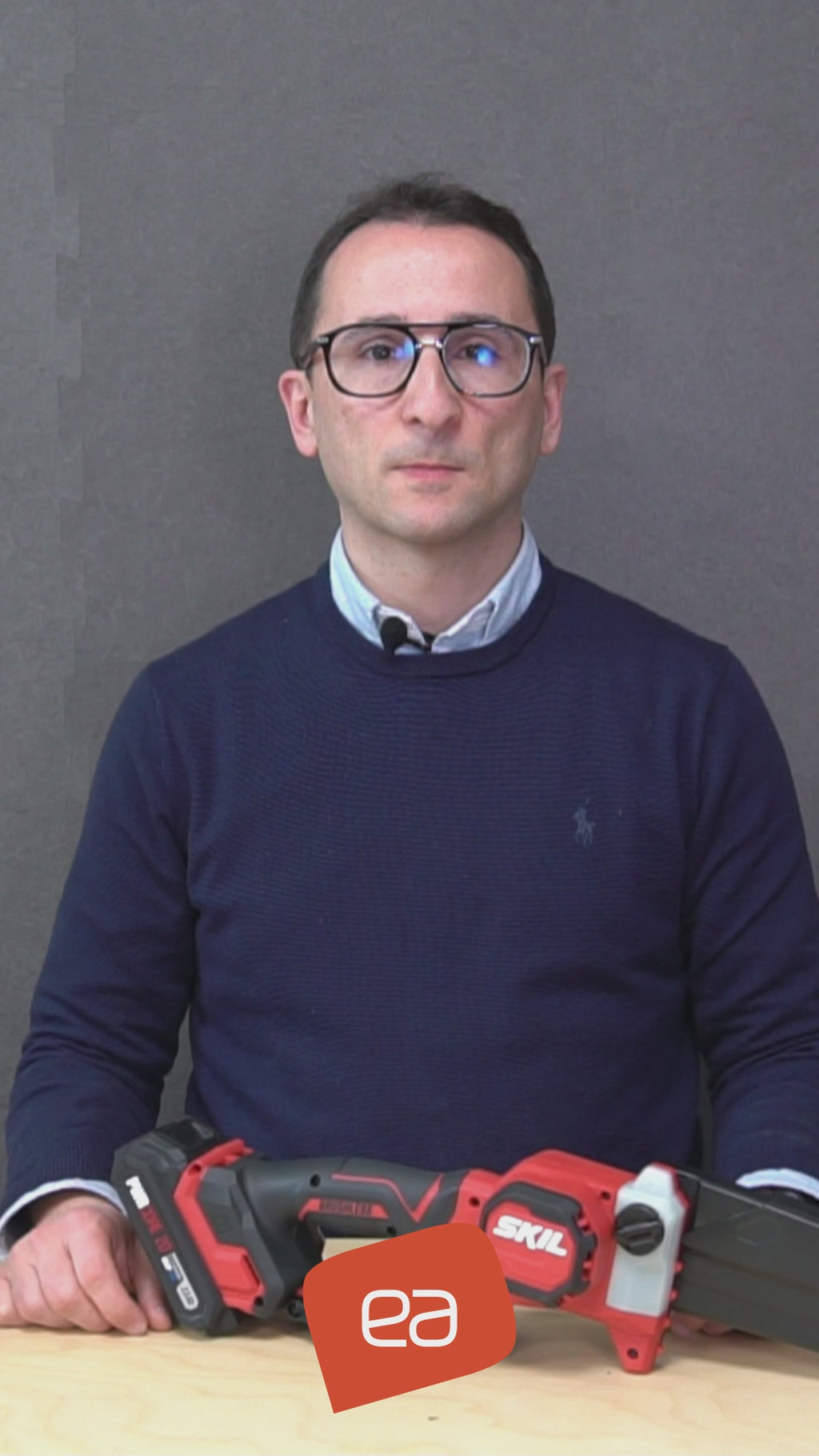 Nuovissimo potatore a batteria con barra da 15cm, lubrificazione automatica della catena e regolazione della catena senza attrezzi.