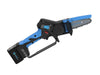 Il nuovo attrezzo riesce a tagliare rami dal diametro massimo di 8 cm, senza sbavature e senza rallentamenti. Il suo peso è di soli 1,200 kg, inclusa la batteria plug-in agli ioni di litio che lo alimenta, dal voltaggio nominale di 14,4 V (16,8 V max..) e dalla capacità di 2,5 Ah. L’autonomia di carica permette all’operatore di eseguire fino a 90 tagli su rami dal diametro massimo di 6 cm.