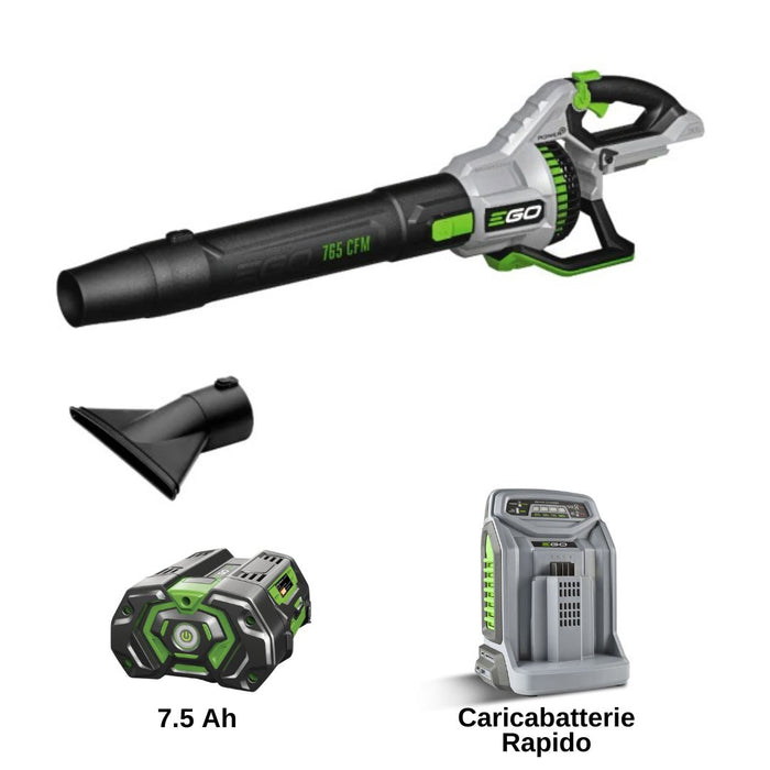 Soffiatore batteria Ego Power Plus LB7650E 56 Volt - 1300 mc/h - Solo macchina, Completo di Batteria da 7.5 Ah e caricabatteria rapido